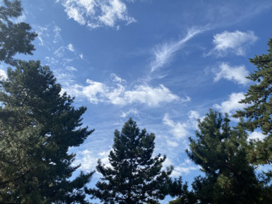 夕暮れ時、ふと見上げるとまだくっきりと夏の雲。